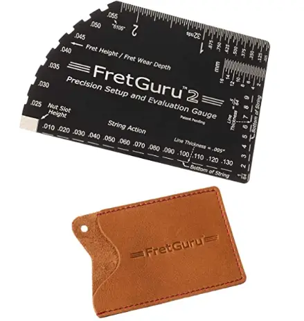 Can you say versatile? This 8-in-1 guitar rocker luthier tool will measure string gauges (in ten thousandths of an inch!), as well as string action. If that weren’t enough, it can also measure fret height, and nut slot height! And it’s a fret rocker, too!
